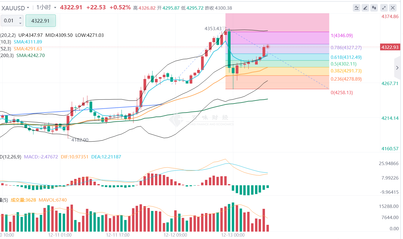 上周五国际黄金下拉核心源于基本面分歧与短期情绪回调。基本面方面,美联储多位官员发表对立言论,反对降息的官员强调通胀风险仍存,主张暂停宽松以观望数据,弱化了市场对激进降息的预期;同时美债收益率攀升至逾两周新高,提升黄金持有机会成本,对金价形成直接压制。市场情绪上,黄金前期冲高后积累大量获利盘,在关键阻力位遭遇集中止盈,进一步放大回落幅度。