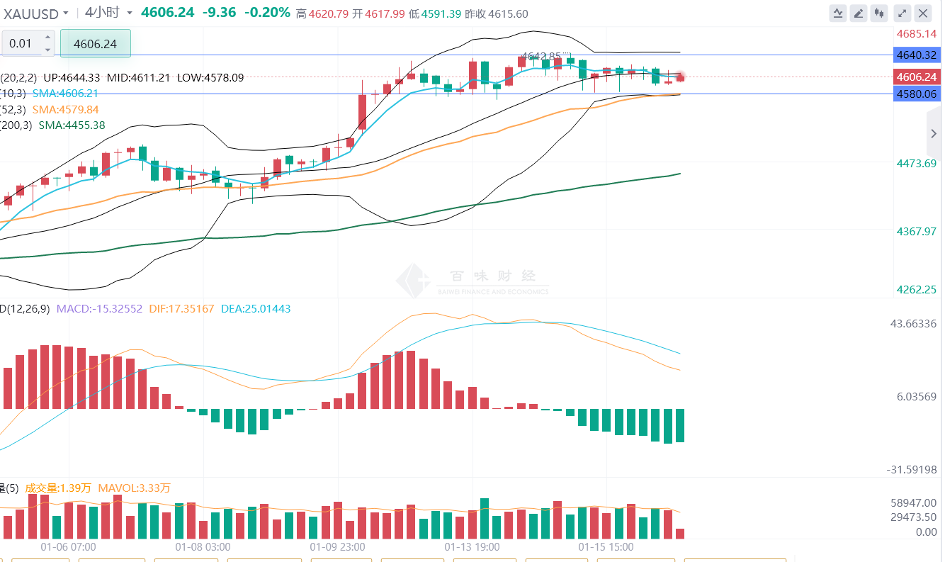 技术面来看,四小时级别布林带收口极窄,说明方向选择越来越近,下方 4580-4590 是优质支撑位,4550 则是本周跳空缺口的关键回补位;上方 4640 是前期高点压制,突破后才能重拾升势。下周如果地缘风险复燃,金价很可能借势突破 4640,向 4680-4700 发起冲击;就算短期回调,4550 附近的支撑也会比较牢固。