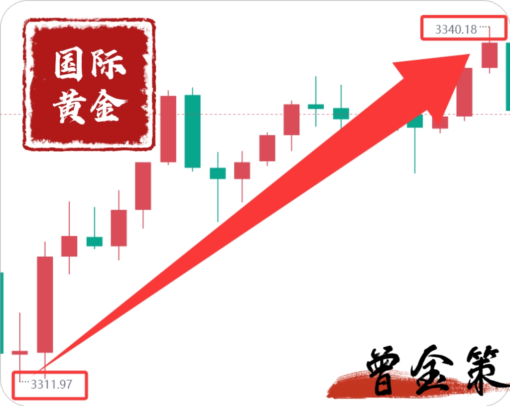 现货黄金周三在 3310-20 /盎司布局做多策略,精准命中行情节点,价金价最高拉升至 3340 美元/盎司。