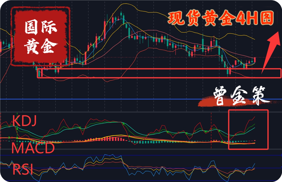 ❷:4小时级别上:布林带开口扩大,MACD 指标红柱放量,双线金叉向上,多头力量有所加强;RSI 指标死超卖后反弹,整体看,金价反弹迹象明显。