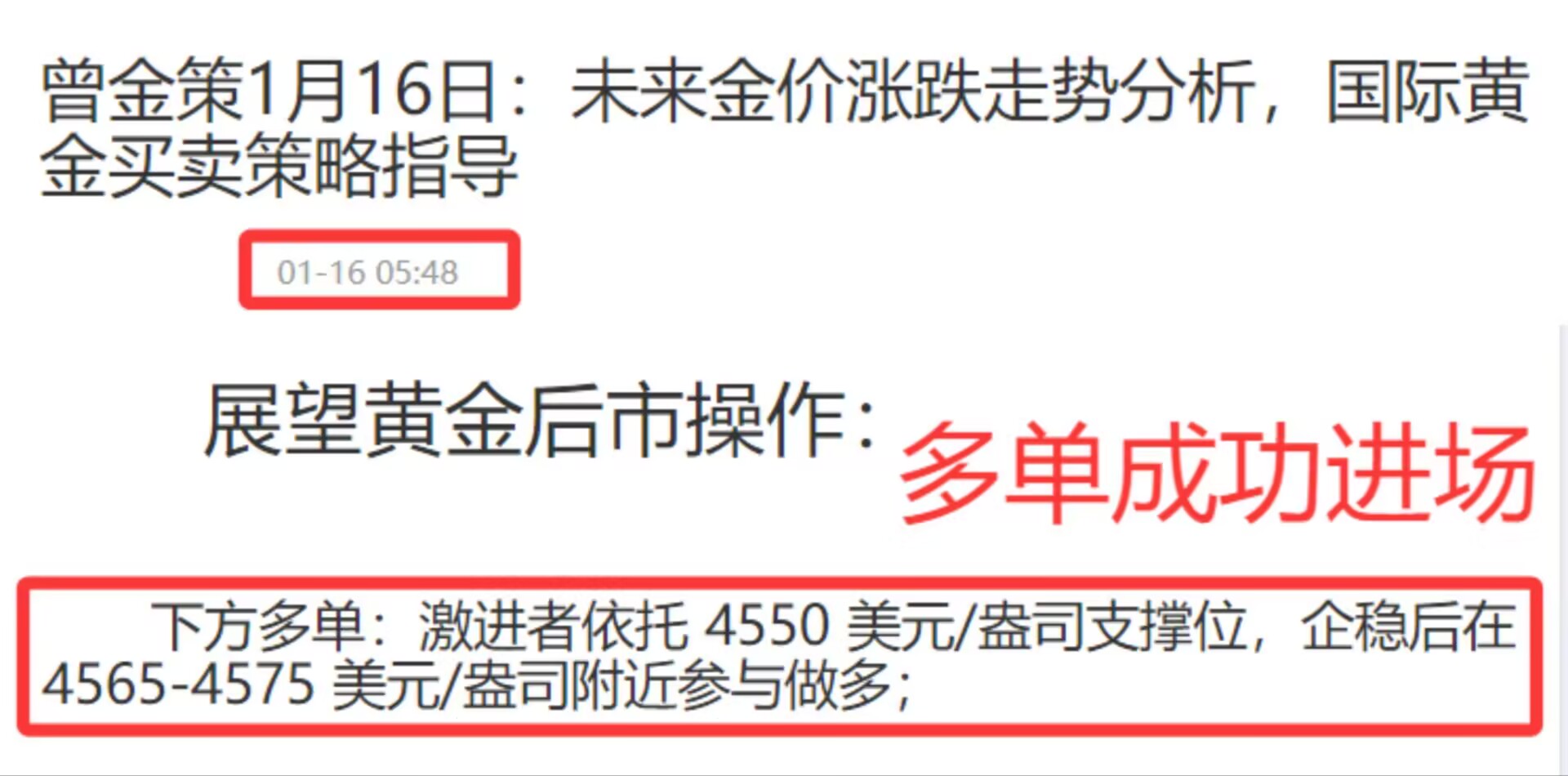 提前布局黄金低位做多策略收获良好成果:提前布局——依托4550美元/盎司企稳后在4565-4575美元/盎司参与做多,成功触及进场点位反弹企稳后急速拉升,金价成功暴涨,后续仍要留意市场消息。