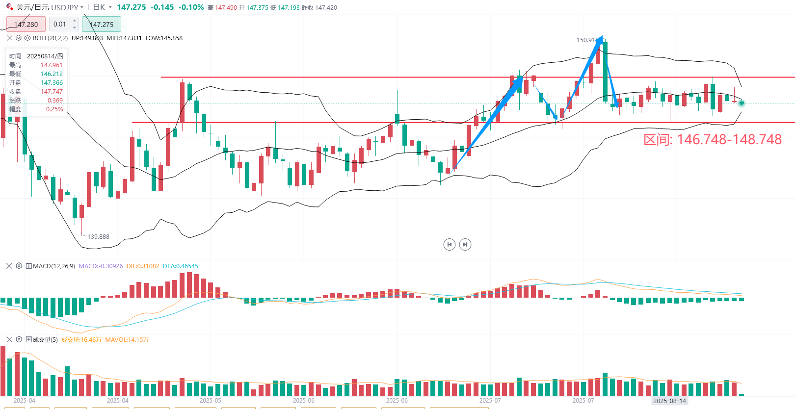 总结: 一边是日本央行 “想加息” 带来的日元升值拉力,一边是美国 “要降息” 引发的美元贬值推力,这两股力量一拉一推,注定让美元兑日元大概率朝着下行方向走,但考虑加息的同时还得担心美国提高关税。后续就盯紧两个信号,日本央行什么时候真的加息,美国关税是否有新动作。
