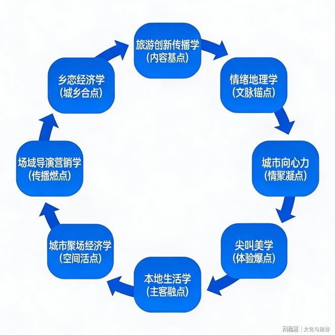 城市聚场经济学聚焦通过城市空间结构改建提升吸引力,实现消费者、企业及环境互动,刺激消费与就业增长,探索城市集聚机制中的双重乘数效应,属于宏观经济学范畴。其核心内涵涵盖人本性、全民性、开放性与共享性,以城市集聚理论与场景营销理论为支撑。通过“欢乐唤醒”引发情感共鸣,结合“文化活化”增强归属感,采用无界场景融合推动消费集聚与资源升。