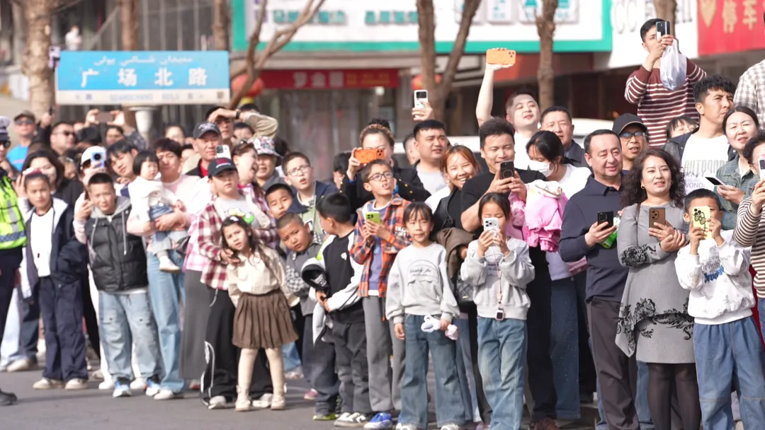 这是全国首次、规模最大的黑羊巡游。身披艾德莱斯绸、颈挂铃铛的头羊们,以昂扬的姿态引领羊群,向沿途市民游客致以春日问候。