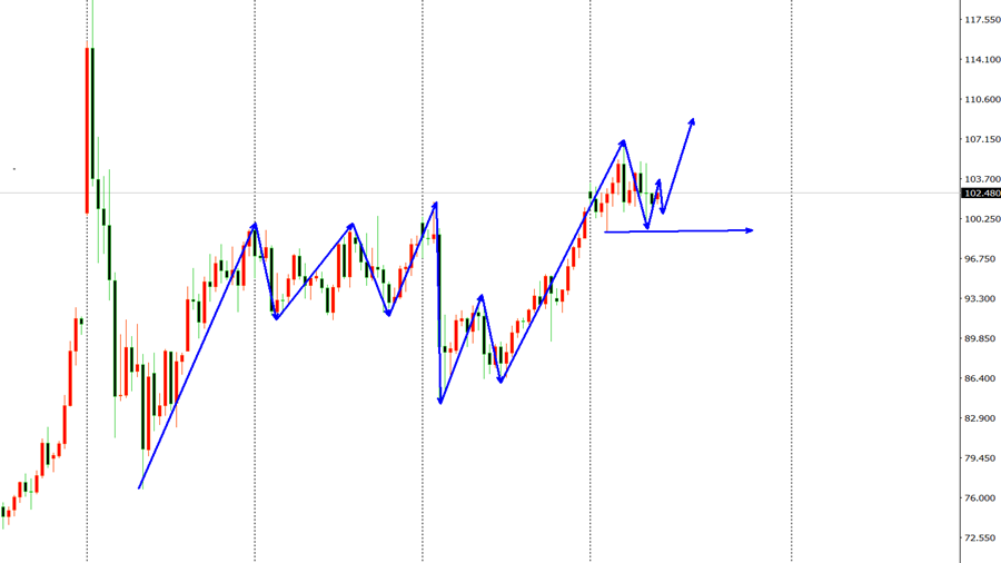 美原油市场昨日开盘在102.03美元/桶,后行情先拉升,日线最高触及到了103.6美元/桶,后行情强势回落,日线最低给到了96.68美元/桶,后行情得到支撑拉升,日线最终收线在了99.17美元/桶,后日线以一根下影线稍长于上影线的大阴线收线,而这样的形态收尾后,原油持续高位调整中。综合来看,高博景总结:原油大趋势上的上涨,暂时小级别的调整,考量支撑效果,今日操作上考虑回撤布局多单为先,高空为辅,上方关注101.0-104美元阻力,下方关注97.0-95.0美元支撑。