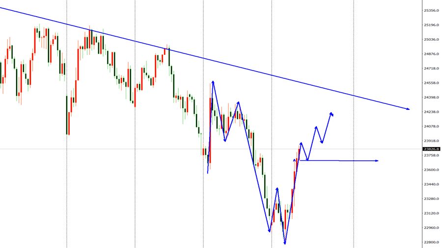 纳指市场昨日开盘在23707.2美元,后行情小幅回踩给出23696.49美元,后行情强势拉升,日线最高触及到了24169.73美元,后整理日线最终收线在了24005.43美元,后,日线以一根上影线很长的大阳线收线,而这样的形态收尾后,纳指持续考验中。综合来看,高博景总结:纳指在触及新低之后的强势反弹形成了加强迹象,但是还要关注多头的持续性,今日操作上考虑回撤布局多单为先,高空为辅,上方关注24235-24500美元阻力,下方关注23800-23600美元支撑。