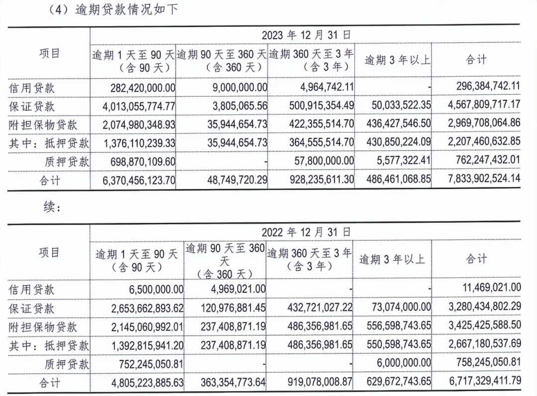 而保定银行2023年的发放贷款和垫款总额为782.79亿元。通过测算可以发现,逾期贷款占总贷款的比例为10.01%,换言之保定银行有超过10%的贷款因逾期成为了非正常类状态。