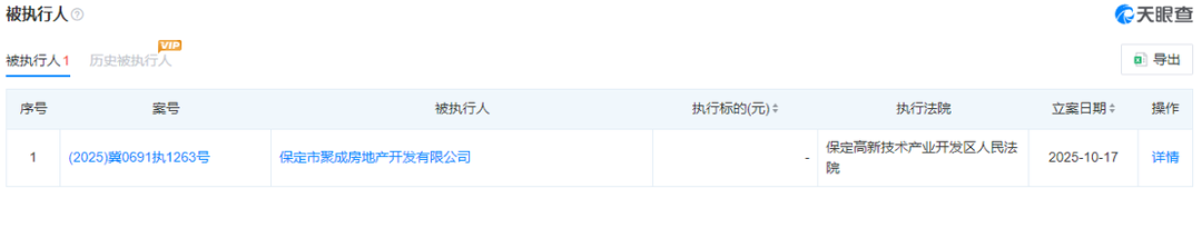 不过,今年10月17日,保定市聚成房地产开发有限公司被保定高新技术产业开发区人民法院列为被执行人。