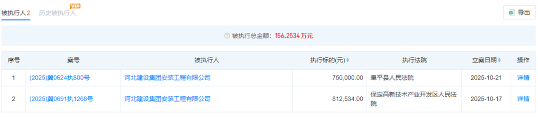 河北建设集团安装工程有限公司和河北建设集团装饰工程有限公司都是河北建设集团100%控股的子公司,但是两家公司都在前段时间成为被执行人。天眼查显示,河北建设集团安装工程有限公司的被执行总金额为156.25万元,河北建设集团装饰工程有限公司的被执行总金额为70.08万元。
