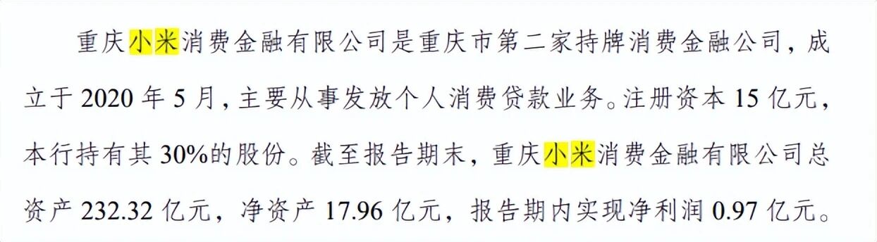 作为小米消金第二大股东的重庆农商行,在2025年半年报中披露了小米消金今年上半年的业绩。报告指出,截至报告期末,小米消金总资产232.32亿元,净资产17.96 亿元,报告期内实现净利润0.97亿元,同比增长140%。