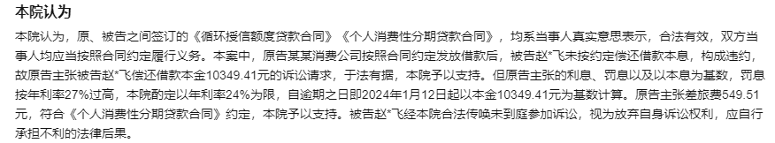 河南省安阳市北关区人民法院今年5月30日发布的民事判决书(4月10日判决)显示,小米消金请求法院判令被告赵某偿还的罚息按照年利率27%计算,但未获支持。法院认为,原告主张的利息、罚息以及以本息为基数,罚息按年利率27%过高,酌定以年利率24%为限((2025)豫0503民初570号)。