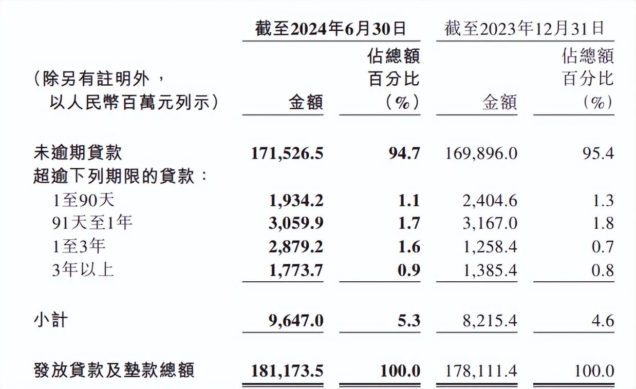 九台农商行的逾期贷款规模也在快速扩大,从2023年末的82.15亿元,上涨至2024年6月末的96.47亿元,短短半年时间增加了14.32亿元。截至2024年6月末,九台农商行逾期贷款占总贷款的比例为5.3%。