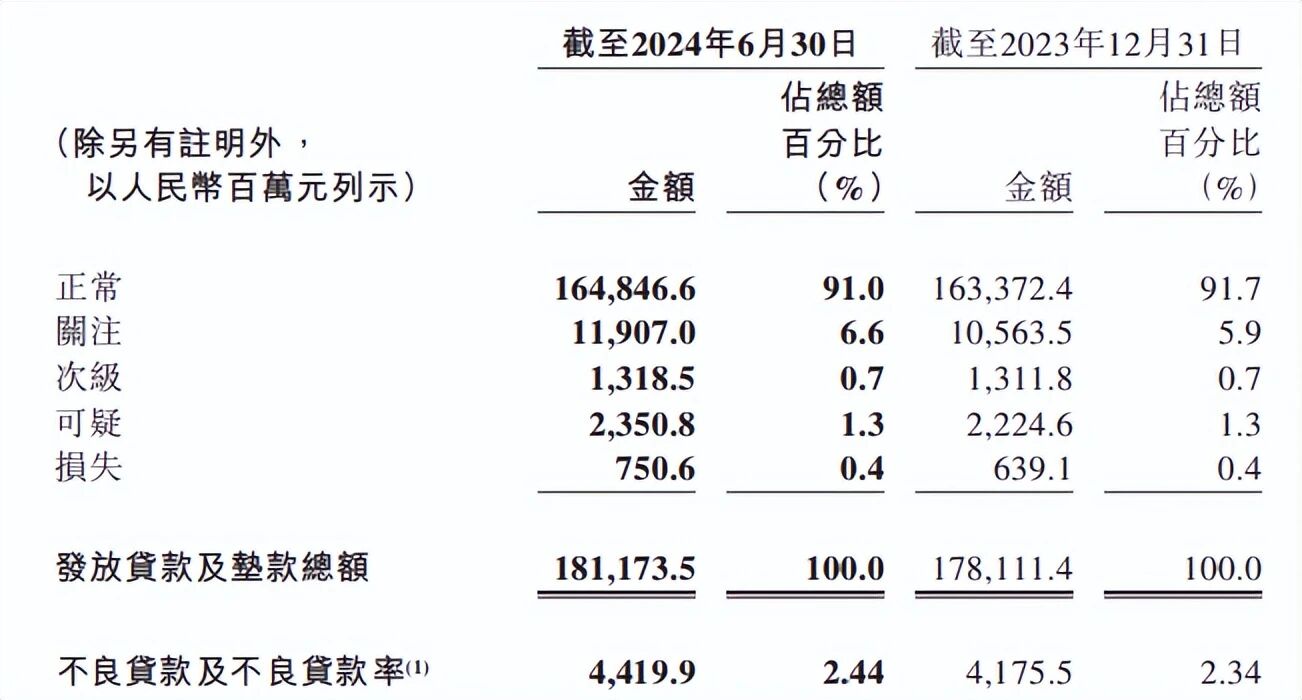 在业绩快速下滑的同时,九台农商行的资产质量也在进一步恶化。截至2024年6月末,九台农商行的不良贷款率达到了2.44%,不良贷款余额为44.19亿元。