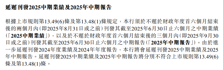 8月19日,九台农商行再度发布公告,称2024年度业绩及2024年年度报告将会进一步延迟刊发,同时将会延迟刊发2025中期业绩及2025年中期报告。九台农商行给出的理由,与上次一样。