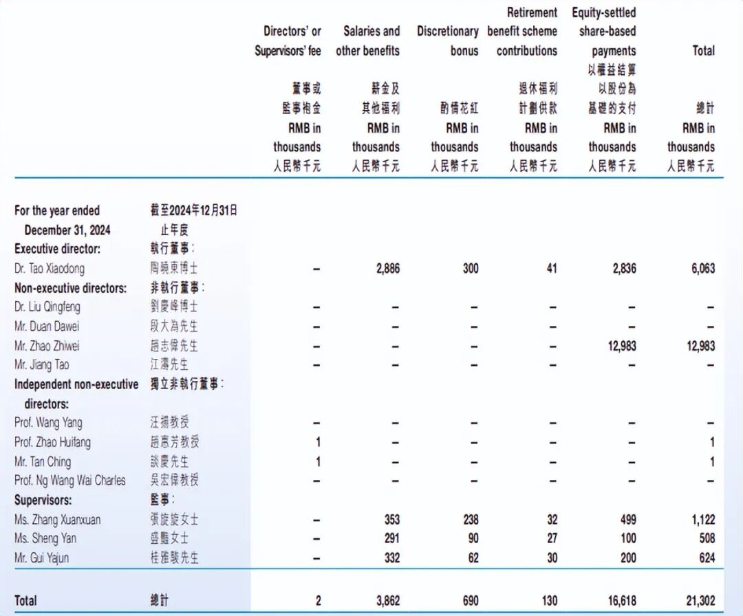 其实,赵志伟的薪酬相比此前其实已经大幅下降,他在2023年的薪酬甚至高达2140.6万元,同样是全部来自以权益结算以股份为基础的支付。
