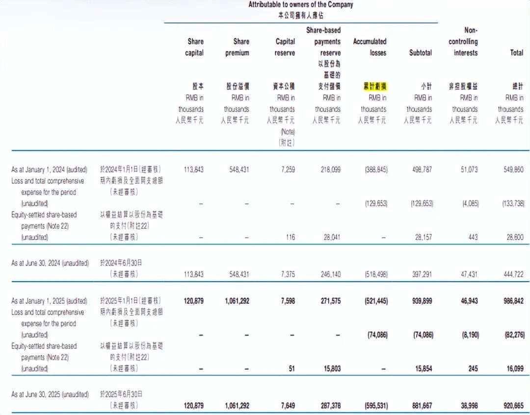 当然,可能是由于依旧处于亏损期,主要管理人员以权益结算以股份为基础的支付从上年同期的971.3万元,下降至2025年上半年的542.9万元。