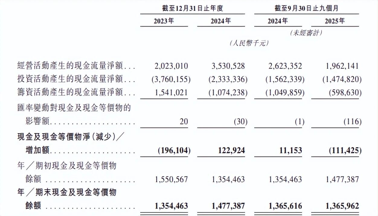 尽管净利润保持着不错的增幅,君乐宝的现金流却不容乐观,面临的债务压力不小。招股书显示,君乐宝2025年前三季度经营活动产生的现金流量净额为19.62亿元,比2024年同期的26.23亿元少了6.61亿元。君乐宝2025年初的现金及现金等价物余额为14.77亿元,到三季度末减少至13.66亿元。