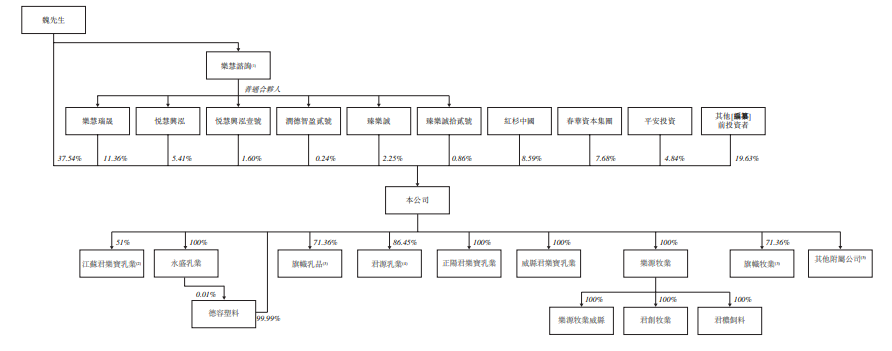 招股书显示,君乐宝的创始人、现任公司董事长、执行董事、总经理魏立华直接持有君乐宝37.54%的股份。乐慧咨询持有君乐宝21.72%的股份,而魏立华拥有乐慧咨询99%的股权。也就是说,魏立华通过乐慧咨询持有君乐宝21.5%的股份,一共持股59.04%。按照这个持股比例,魏立华过去3年的分红一共是15.5亿元左右(税前,下同)。