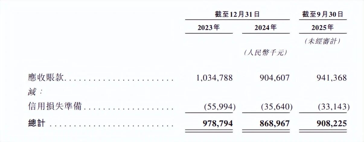 君乐宝目前还面临一个问题,应收账款再度开始增加。招股书显示,君乐宝2023年和2024年的应收账款分别是9.79亿元、8.69亿元,2024年比上年下降了1.1亿元,但是2025年前三季度又上升到了9.08亿元,而且已经做出了3314.3万元的信用损失准备。