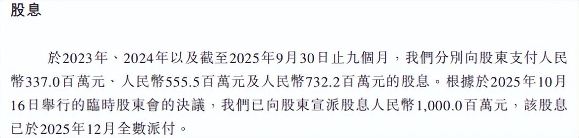 招股书还介绍,君乐宝于2023年、2024年以及截至2025年9月30日止九个月,分别向股东支付3.37亿元、5.56亿元及7.32亿元的分红。也就是说,在过去3年里,君乐宝向股东的分红一共达到了26.25亿元。