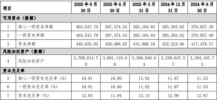 2025年第三季度第三支柱信息显示,华瑞银行的资本充足率在连续下滑两个季度之后,也在第三季度也有所回升,资本充足率为12.04、一级资本充足率和核心一级资本充足率都是10.91%。
