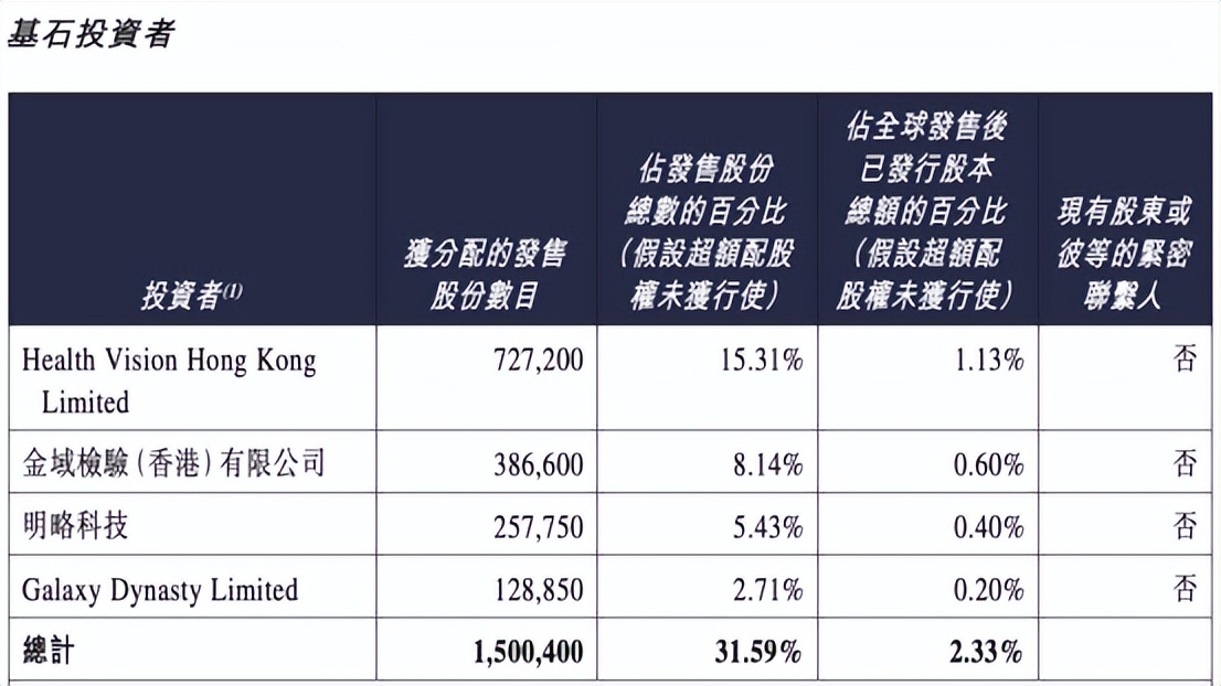 但卓正医疗此番IPO发行的股份总数仅475万股,相较港交所过往上市企业偏低,因此最终募资规模亦较小,不足3亿港元,其中基石投资者认购了约150万股发行股份,占比31.59%。