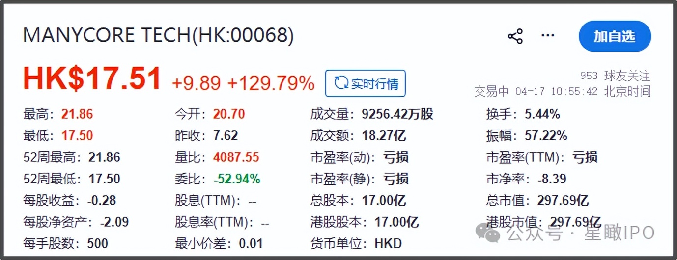 在4月16日的暗盘交易阶段,群核科技报收19.6港元/股,较招股价7.62港元/股涨157.22%。