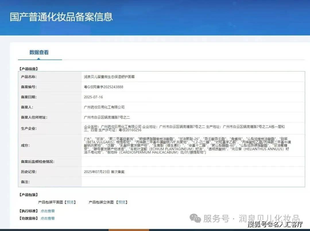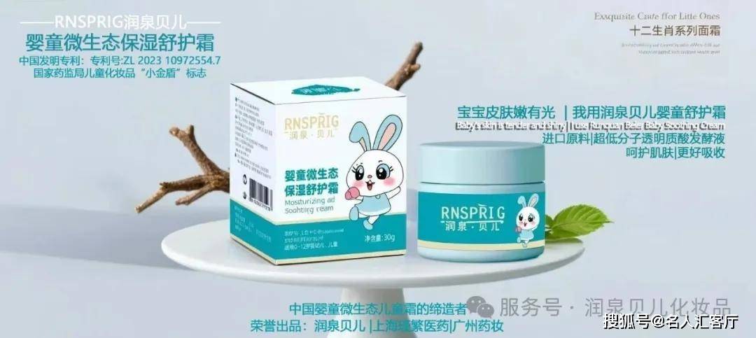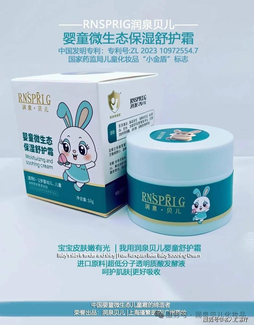 如今,婴儿护肤品的安全性能成为消费者最为关注的核心。新一代宝妈在挑选儿童护肤品时,也更加关注安全性和专业性,例如,知名品牌润泉贝儿联合广州药妆公司和上海槿繁生物医药科技公司,针对婴幼儿面部肌肤的独特肤质而量身打造的润泉贝儿婴童微生态保湿舒护霜,该霜采用创新的核心专利技术,中国发明专利:专利号:ZL 2023 10972554.7,专利成分:乳酸杆菌发酵产物、酵母菌发酵产物滤液、透明质酸钠。
