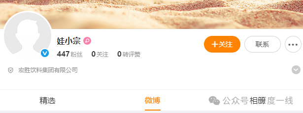宗馥莉推出“娃小宗”,宏胜饮料集团已开通微博账号,截至发稿其粉丝数仅400余人。