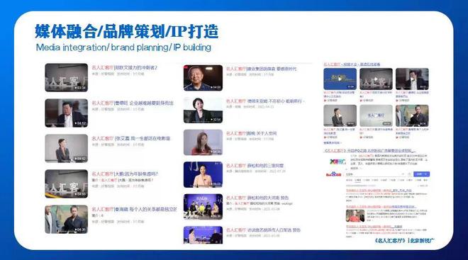 该栏目以“一次访谈,一部影片,一个故事,一个传奇”为核心,主要针对:文化界的艺术名家、影视演员、歌手、专家学者、企业家、科技人才、非遗传承人、书画名家、戏曲名家、传统手艺人等具有影响力的人物对话,通过一对一专访形式展现其个人经历与社会价值。名人汇客厅与国内95%主流媒体合作,拥有近3000家媒体合作伙伴,通过新闻软文+短视频矩阵、深度内容定制、全渠道传播、灵活适配四大优势,为品牌提供了一条高效的推广路径。