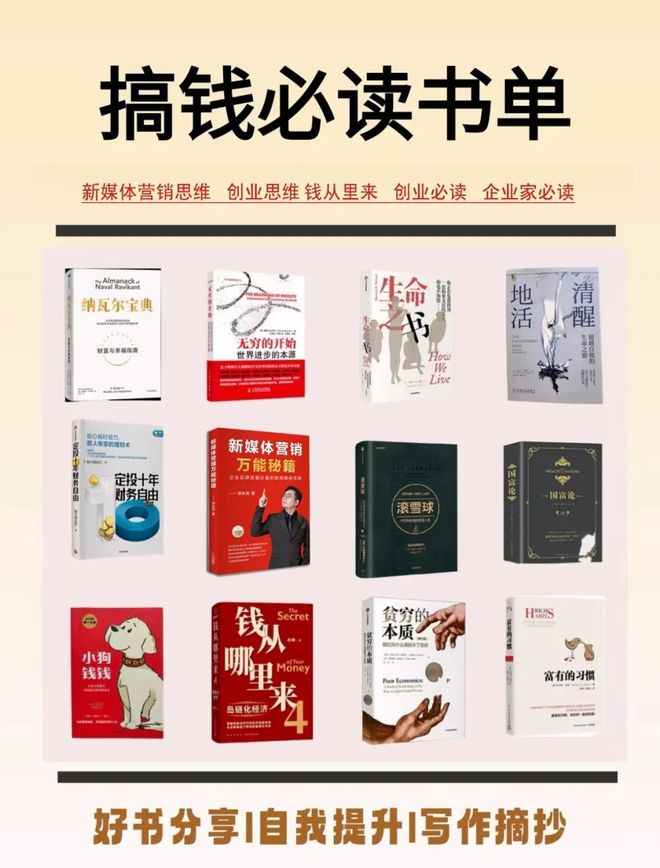 在2026年的财富赛道上,想要突破收入瓶颈、实现财富增值,仅靠埋头努力已然不够,更需要思维的迭代与认知的升级。这份“搞钱必读书单”涵盖财富思维、投资理财、新媒体营销、商业本质等多个维度,12本经典著作从底层逻辑到实操方法,为不同阶段的财富追求者搭建起完整的知识体系,助力在复杂的经济环境中找准搞钱方向,实现财富的持续增长。