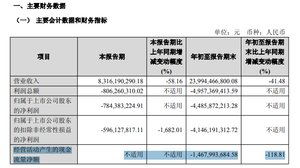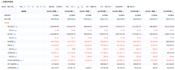 进入2025年,亏损局面并未改善,反而进一步恶化:一季度归母净利润亏损8.56亿元,上半年亏损扩大至37.01亿元,亏损同比增加10.1%,前三季度亏损额已达44.86亿元,较上年同期的34.1亿元亏损进一步扩大了3成。