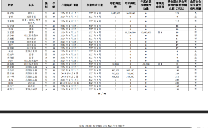 即便是金地集团去年新任的董事长徐家俊2024年的薪酬就有228万等等,与金地集团目前的经营形势也似乎不符。