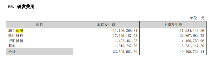 不只是销售费用,管理费用、研发费用都有不同程度的下降。其中,管理费用从去年同期的8895.44万元,下降到了今年上半年的8401.41万元,薪酬社保、福利及劳务费用3785.33万元下降到了3471.58万元;研发费用从去年同期的4049.87万元,下降到了今年上半年的3259.56万元,职工薪酬从1193.41万元小幅下降到了1172.63万元。