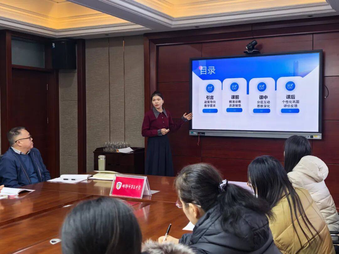当AI浪潮拍打教育的堤岸,语文教学既要涵养本源,亦当顺势而为。为提升教学效能,让语文教育在智能时代焕发新生,邯郸市第三中学高中语文教研组开展“AI赋能教学”活动。活动由语文教研组组长张欣主持,参与者有党委书记杜海兵、教学处副主任杨宁以及全体高中语文组教师,共同开展一场兼具深度与温度的专题研讨。