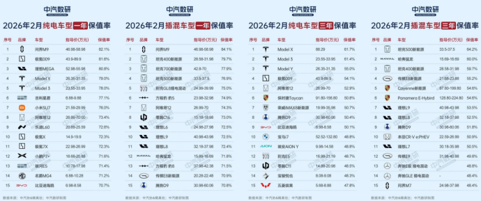 此外,中汽数研2月中国新能源汽车保值率研究报告显示,纯电车型一年保值率前十名中,蔚小理只占据两席;插混车型占据两席。三年保值率中,蔚小理分别占据0席和两席。品牌保值程度并没有显著高于其他车企。