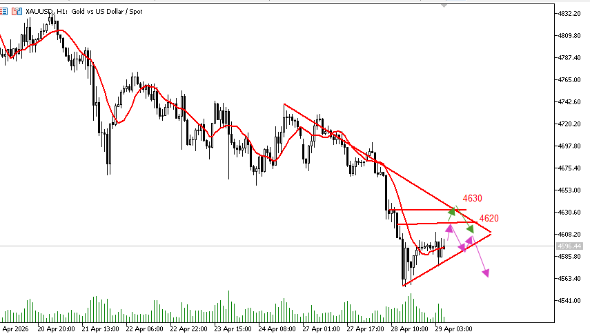 4550 水平作为关键支撑区域,而 4650 则充当重要的短期阻力区域。果断突破该水平可能开启进一步的上行潜力。从动量指标来看,虽然看涨动能仍占主导,但出现边际放缓迹象,表明在更高水平追高买入的意愿正在减弱。 在1小时图表上,价格处于盘整区间,短期波动性收窄。RSI 指标正接近中性水平,表明市场正在等待新的催化剂来指引方向。