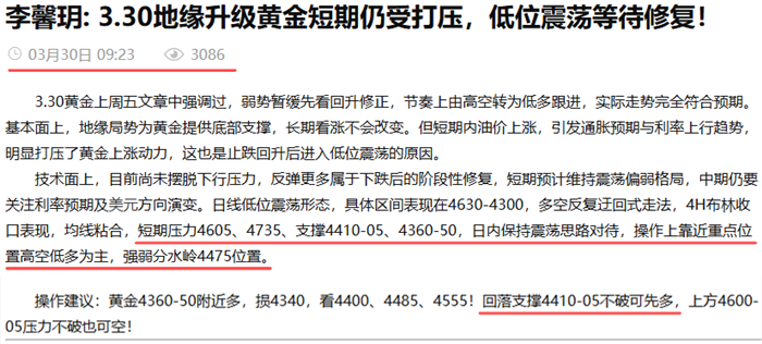 李馨玥: 3.30黄金早盘跟多如期拉升,低位震荡高抛低吸!