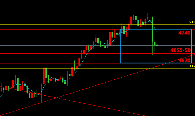 操作建议:黄金关注4620-4740区间,未破前高空低多,有效突破再顺势跟进!白盘4655-50不破可先多!