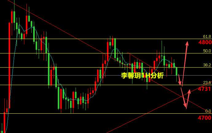 黄金周五白盘策略提示4780-4735小区间,数据后4700-4800大区间,震荡符合预期!日线收小阴,配合周线连续第三周上涨,最终收长影阳线,整体处于慢牛格局,结构未变,下周就继续宽幅震荡看待,宽幅区间表现在4857-4600,整体偏向上涨,能站稳4857再看4900、5000。短期内,周五盘尾冲高触及4795回落,下周一预计还会下探回升,回落支撑在4733-30、4700,操作上根据回落力度做多,再看4770、4795-80压力,震荡节奏靠近关键位置再参与,不要追涨杀跌!