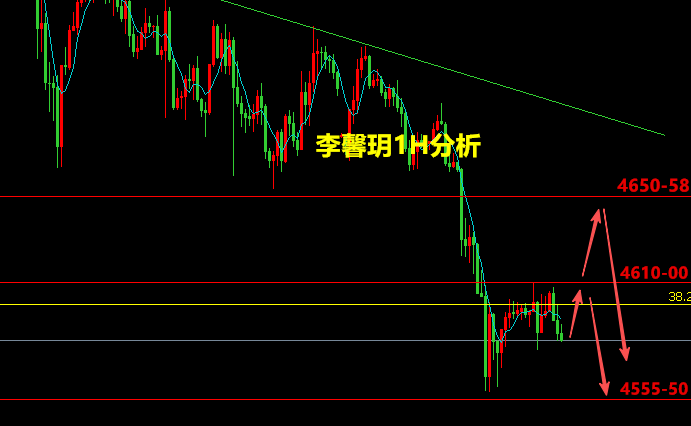 技术面,昨天强调过支撑在4550一线,实际最低下跌4554附近,基本符合预期,那么4550作为关键支撑位,在未跌破前不要盲目追空,一旦跌破还会继续放量,届时再看4500、4470,日线隔夜收大阴,承压均线之下,极弱形态,4H经过连阴下跌后同样弱势,低位横盘以时间换空间修正,压力在4610-00、4650-58,今日反弹高空为主,下方关注4555-50得失!