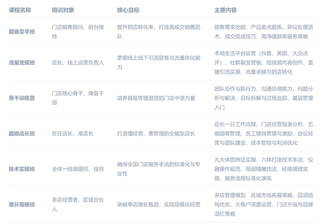 同时,伊简梅商学院以“让零基础者快速上手、让从业者持续精进”为使命,构建了覆盖技术、销售、管理、增长四大维度的六大核心课程体系,为全国加盟商及门店员工提供从入门到精通的全周期培训支持: