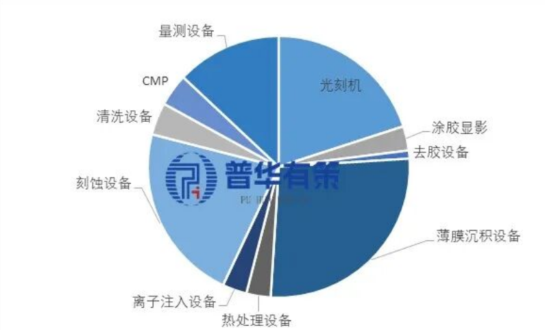图:半导体设备各环节规模占比(%);普华有策