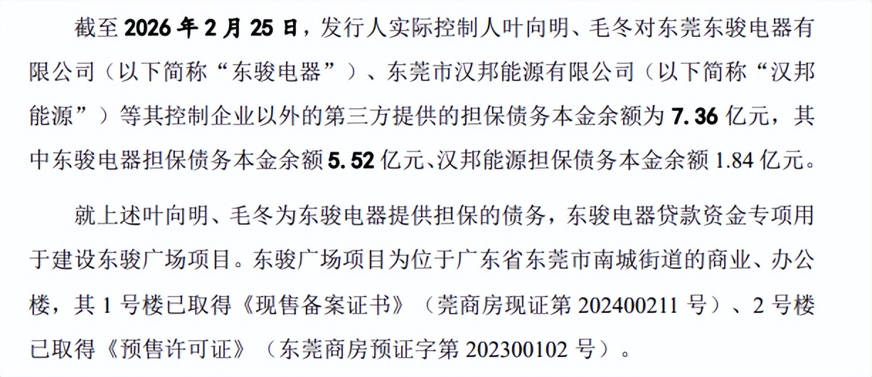 叶向明和毛冬,前东骏集团的合伙人,历史担保并没有因为产业分割而消除。截至2026年2月,叶向明和毛冬的个人对外担保债务本金余额高达7.36亿元。