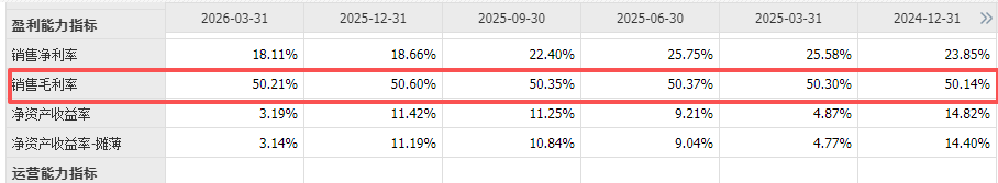最关键的是,2025年毛利率维持在50.60%的高位,同比还提升了0.46个百分点。这组核心经营数据,直接证明其核心产品的定价权和成本能力远未动摇,利润被“挤”,但结构没有被“毁”。