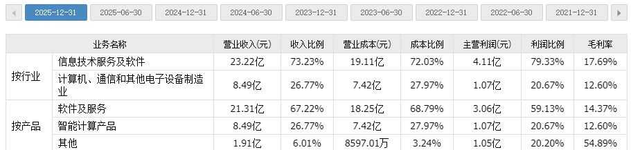 到2025年,信息技术服务及软件再度跃升为公司唯一支柱性主业,占总收入的73.23%,而去年仅占49.56%;并带动公司总毛利率也从2024年的13.95%提升至16.33%。