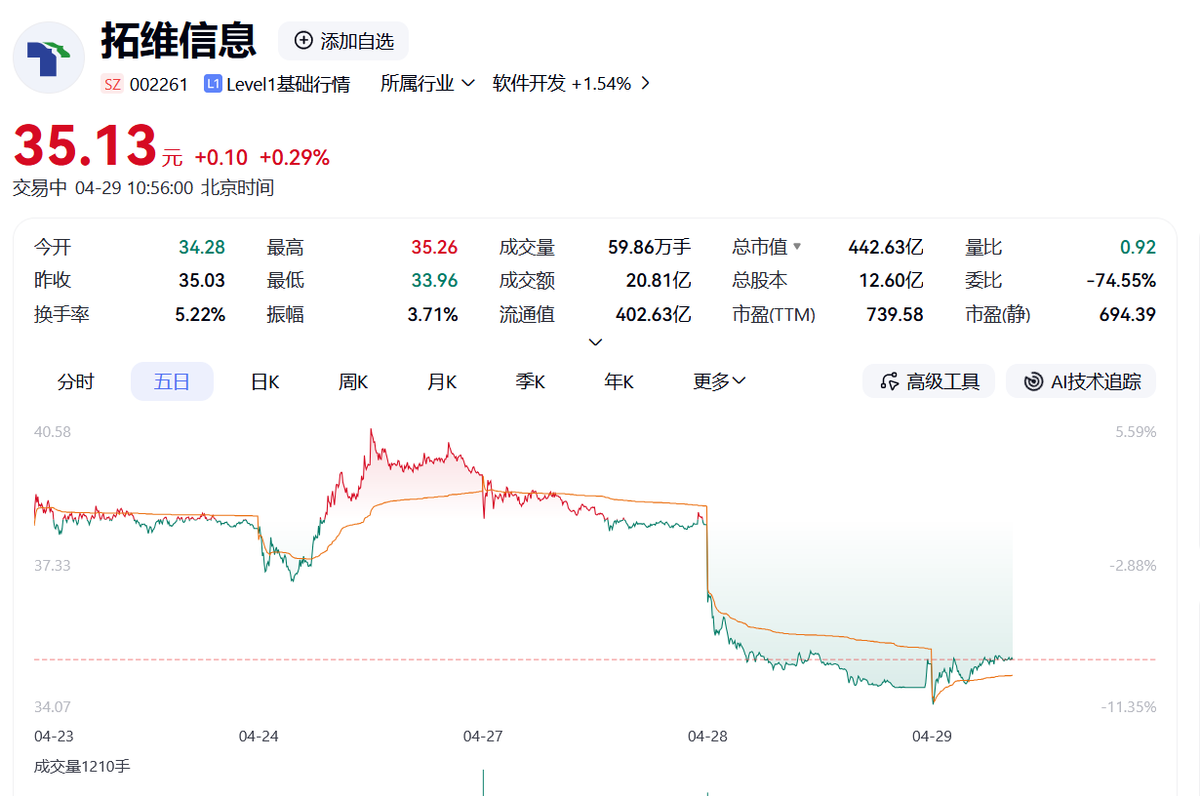 2025年,拓维信息实现营业总收入31.71亿元,同比下降22.79%。