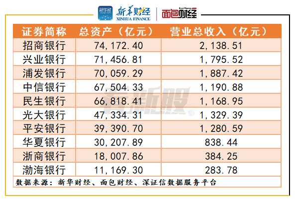 深证信数据服务平台的数据显示,截至2019年底,渤海银行的总资产及营收规模明显小于其他已经上市股份制商业银行,居于行业末位。