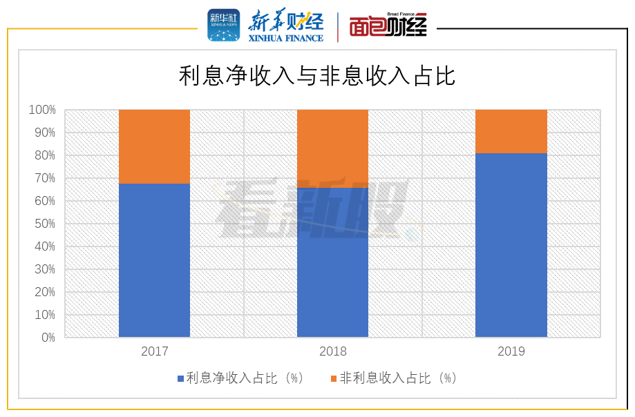 图3:2017-2019年渤海银行利息与非息净收入占比