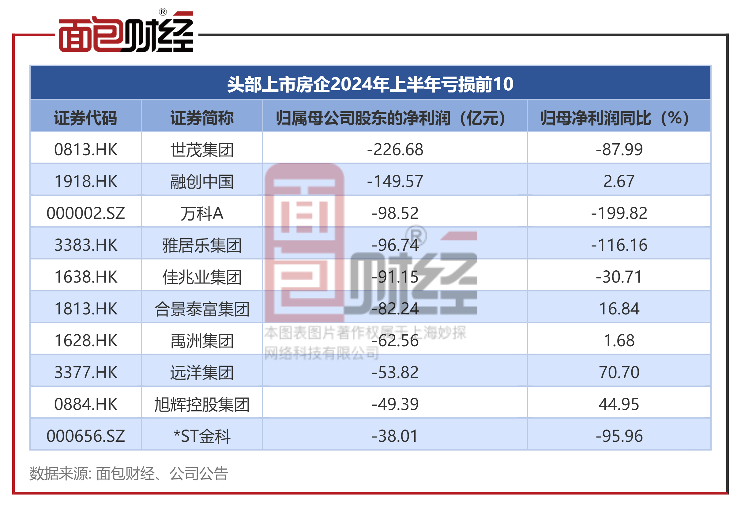 超六成房企上半年归母净利润告负,多受房地产市场下行、高地价项目销售不及预期、资产计提减值等因素影响。世茂集团、融创中国、万科、雅居乐集团等7家房企2024年上半年亏损超50亿元。